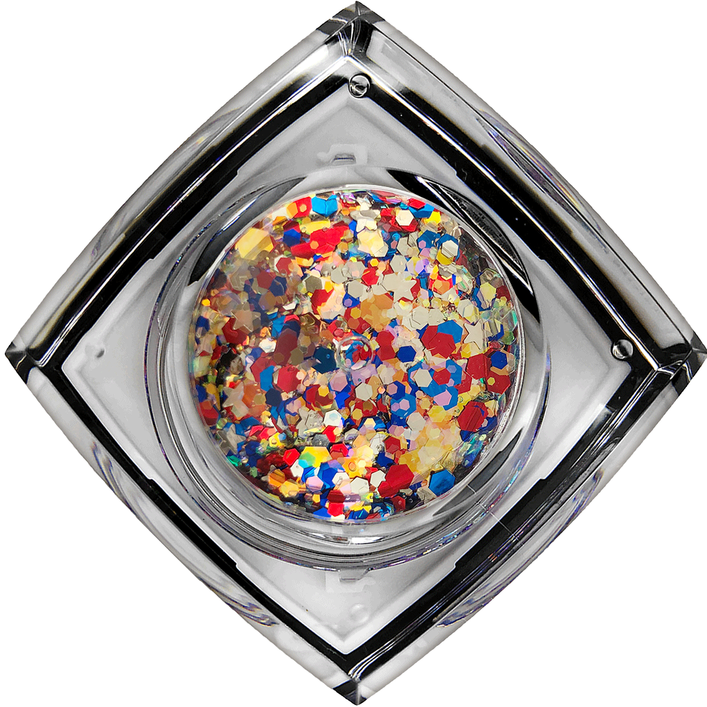 Celebrate the greatest show on earth: the Circus! You’ll feel like you’re under the big top with this exciting mix of red, blue, silver and gold glitter with star-shaped flakes to boot.