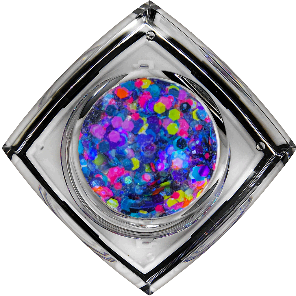 Elektra Cosmetics Bolt Balm is an intense blend of chunky and fine glitters custom mixed in an aloe vera gel base. It’s perfect for hair, body, face, or highlight but is NOT eyelid safe.